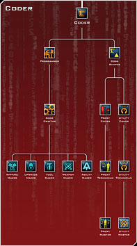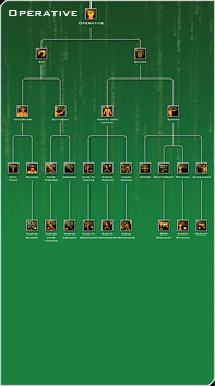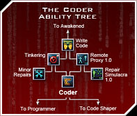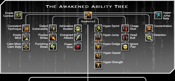 Every redpill operating within the Matrix begins with the introductory Awakened Discipline which grants access to a wide variety of basic Abilities and powers. Once these skills are mastered, three primary branches of Disciplines become available: Coder, Hacker, and Operative. These three major trees lead into every other Discipline in the game.
