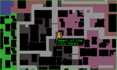 The Heart O' The City Hotel was used by Trinity to monitor Neo before he was freed from the Matrix. It was also where Agent Smith killed Neo as he attempted to exit the Matrix through a hardline. Formerly, the hotel was abandoned, partially burned and dilapidated. It has since been reconfigured as a functional hotel to prevent further misuse.