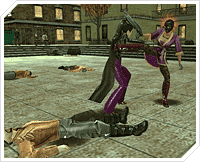 On January 7th, 2005, Monolith Productions hosted a dueling event in The Matrix Online starring our friends from the Quality Assurance Team. Yin, Halle, Halfinch and Tester001 took a break from their day-to-day duties of feature testing and bug reproduction to accept duel challenges from our beta players. Over 70 duels were fought at Debir Court, with top marks going to Monolith for the most wins.