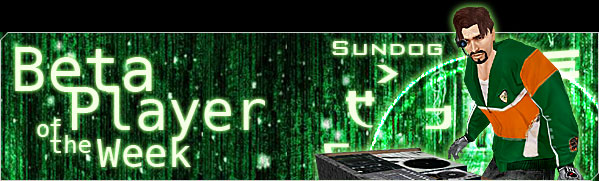 So there you have it folks, with a pinch of superstar DJ, a heaping helping of community support, and a generous scoop of all around nice guy, you've got the recipe for this week's Beta Player of the Week. The Matrix Online Community Team couldn't be more appreciative of Sundog's lengthy list of contributions, and we thank all those who sent in reminders of his good works. Rest assured, we feel the same as you. Congratulations Sundog, you earned it!