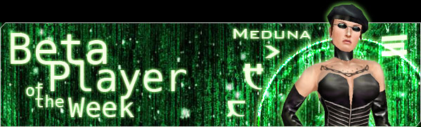 Congratulations to Meduna, Our Beta player of the week! Meduna receives this honor in recognition of her contributions to the community through event planning and involvement. Meduna works hard on behalf of The Matrix Online community, and for that, we salute her! We caught up with Meduna for a Q&A session, and here's what she had to say:
