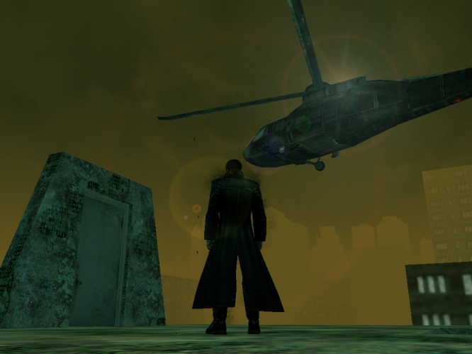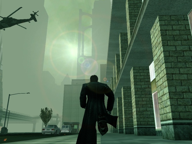 The black helicopters continue their flight over the city.